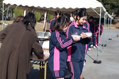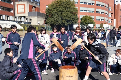 日本の伝統行事である「もちつき」を前日のもち米を研ぐ準備からはじめ、クラスごとにもち米を蒸し、協力して順番にお餅をついて、1年生の各教室に飾る大きな鏡餅と、あんこ・きな粉・醤油・大根おろしなど様々な味付けのおいしいお餅を完成させました。保護者の方々も生徒たちにお餅のつき方のアドバイスを送り、一緒にお餅を完成させて頂いたり、西武文理伝統の『ももんが鍋』を作り生徒たちに振る舞っていただきました。師走のお忙しい中ご協力いただいた保護者の皆様、ありがとうございました。つきたてのお餅を初めて食べた生徒たちは、『柔らかくて美味しい!』と、お餅の美味しさを再認識し、温かい『ももんが鍋』とクラスで協力して1から作ったお餅をとても美味しそうに頂いていました。