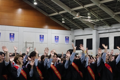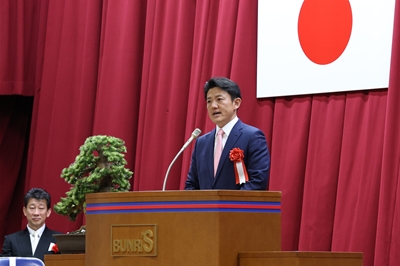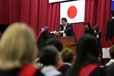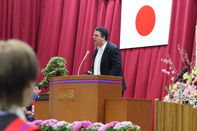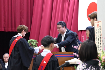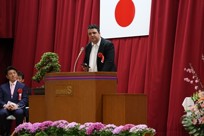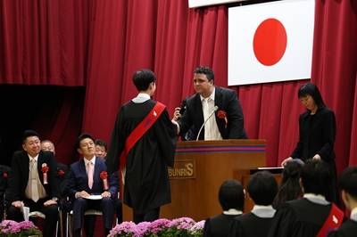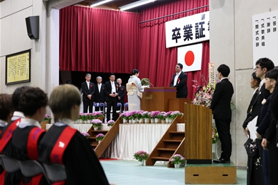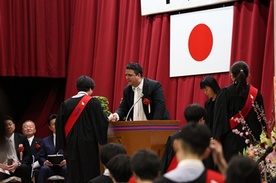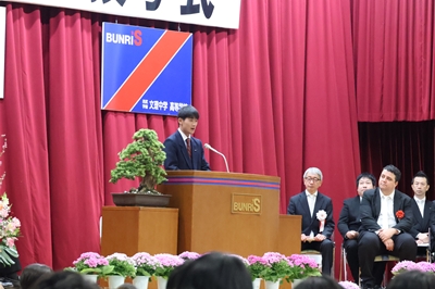 校長としての抽象的なスピーチではなく、人生の先輩としての「具体的で実用的なアドバイス」が贈られ、創立者・名誉理事長 佐藤英樹のことば『あなたならできる、できる、できた』を絶対に忘れないでください!自信を持って頑張れ!必ずうまく行きます!とエールを送られました。