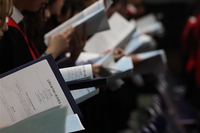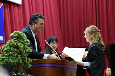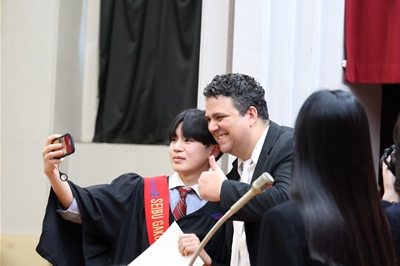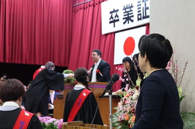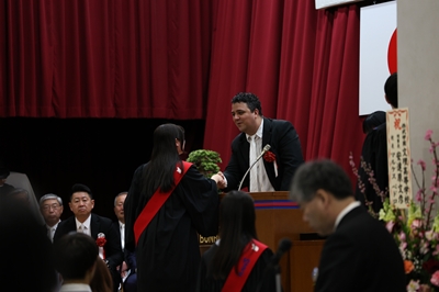 式辞の冒頭、マルケス校長は『皆様は私の自慢の生徒です』と、共に学校を変え成長してきた43期生への深い愛と感謝を述べました。