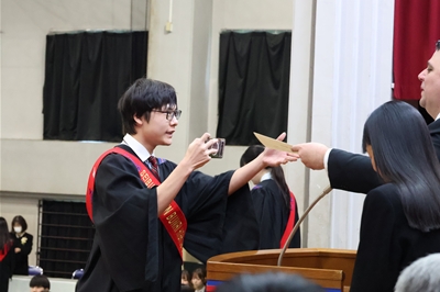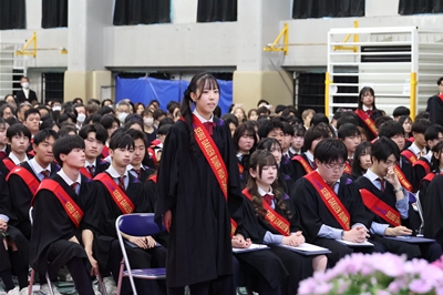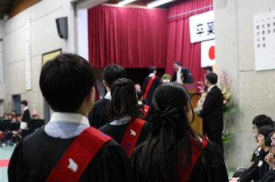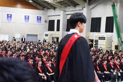 式典では、本校の伝統であるアカデミックガウンを身に纏った卒業生たちが、凛とした表情で会場に集いました。その姿は、単に知識を習得するだけでなく、数々の「ガチ・プロジェクト」や探究活動を通して、自ら考え行動する「非認知能力」を磨き上げてきた彼らの自信と誇りを象徴しているようでした。